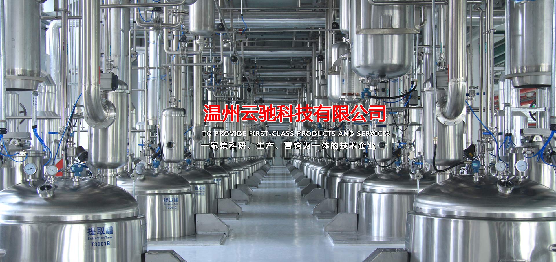 溫州云馳科技有限公司是一家集科研、生產、營銷為一體的技術企業,本公司生產的中藥提取、濃縮、蒸發(fā)及有機溶媒回收設備,衛(wèi)生級不銹鋼容器設備,衛(wèi)生級管道配件等系列產品,范圍涵蓋制藥工程、乳品工程、生物工程、化工工程等領域,目前,本公司產品包含八大系列和28類品種,分別為中藥提取設備、濃縮設備、純化分離設備,酒精回收設備,配液系統設備,食品乳品機械設備,不銹鋼容器設備以及輔助配套設備等,力爭為廣大客戶提供滿意的交鑰匙工程服務,目前,本公司已與多家科研院所及相關設計單位、行業協會、技術專員合作,建立了完善的科研開發(fā)體系,技術力量雄厚,擁有先進的質量保證體系,我們將打造一支素質高,技術精,服務熱情的職業化隊伍,為廣大客戶解決設備工藝上的需求和難題并為廣大客戶提供優(yōu)質的服務。